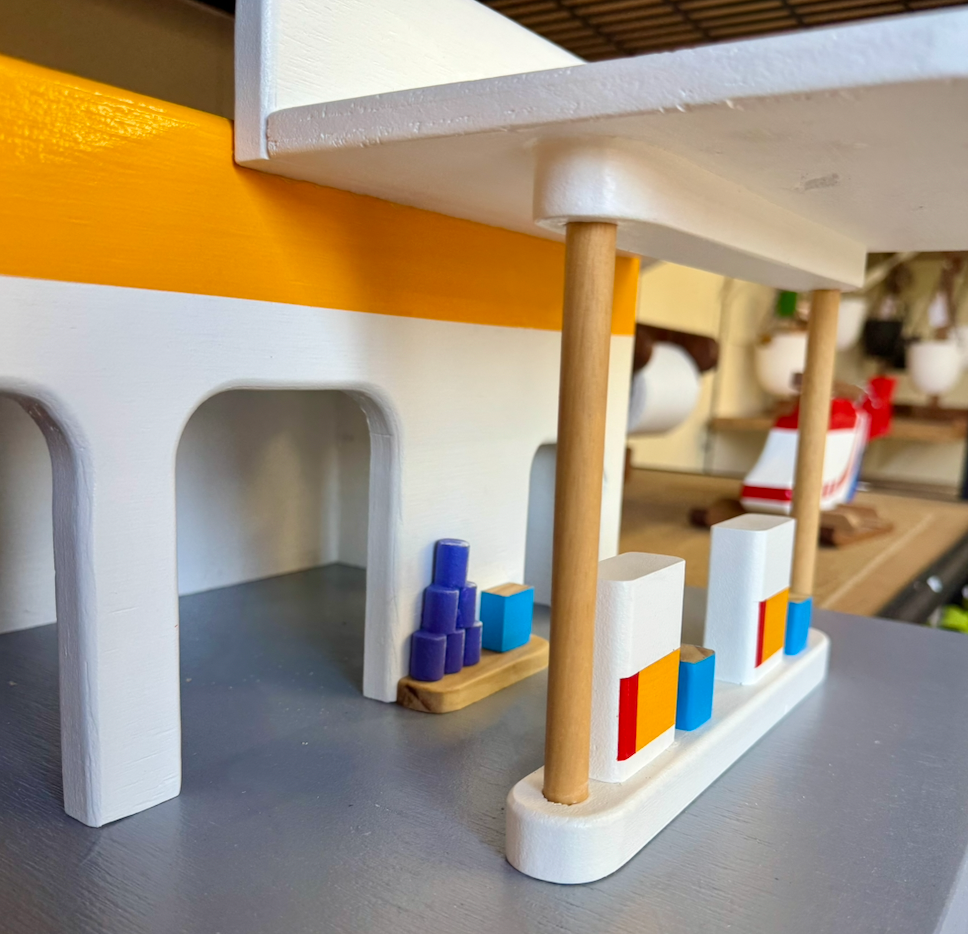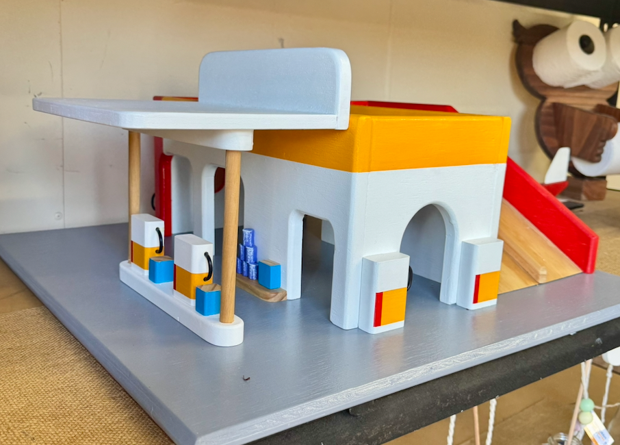 This handcrafted wooden play garage is designed to inspire imaginative, open-ended play. Made from natural timber and thoughtfully finished, it provides a simple yet engaging space for little cars, figures, and creative storytelling.
